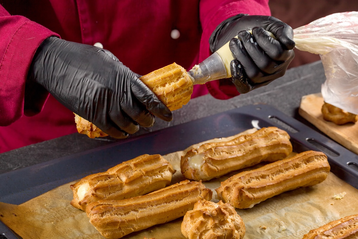 Eclere cu cremă de vanilie și glazură de ciocolată