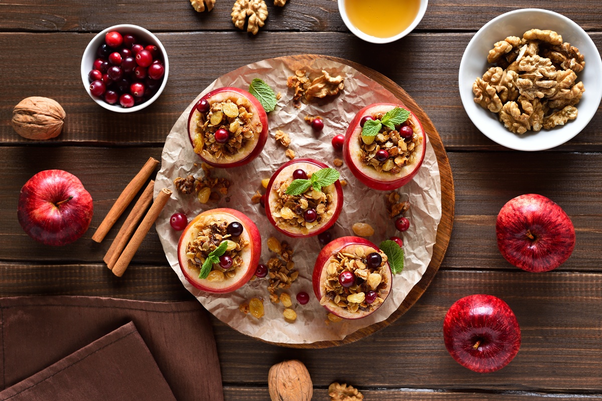 Acasă / Dulciuri / Mere umplute cu granola, nuci și miere / Mere umplute cu granola, nuci și miere