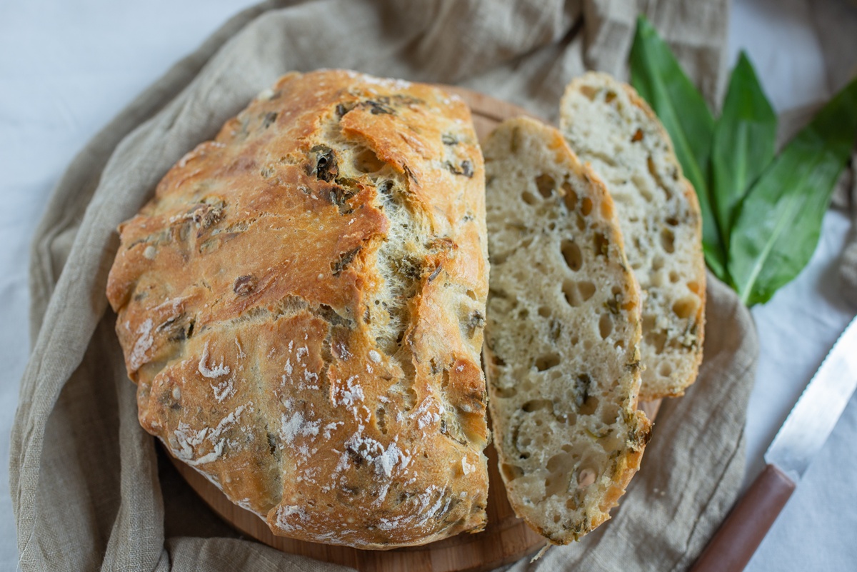 Pâine cu leurdă în aluat, feliată