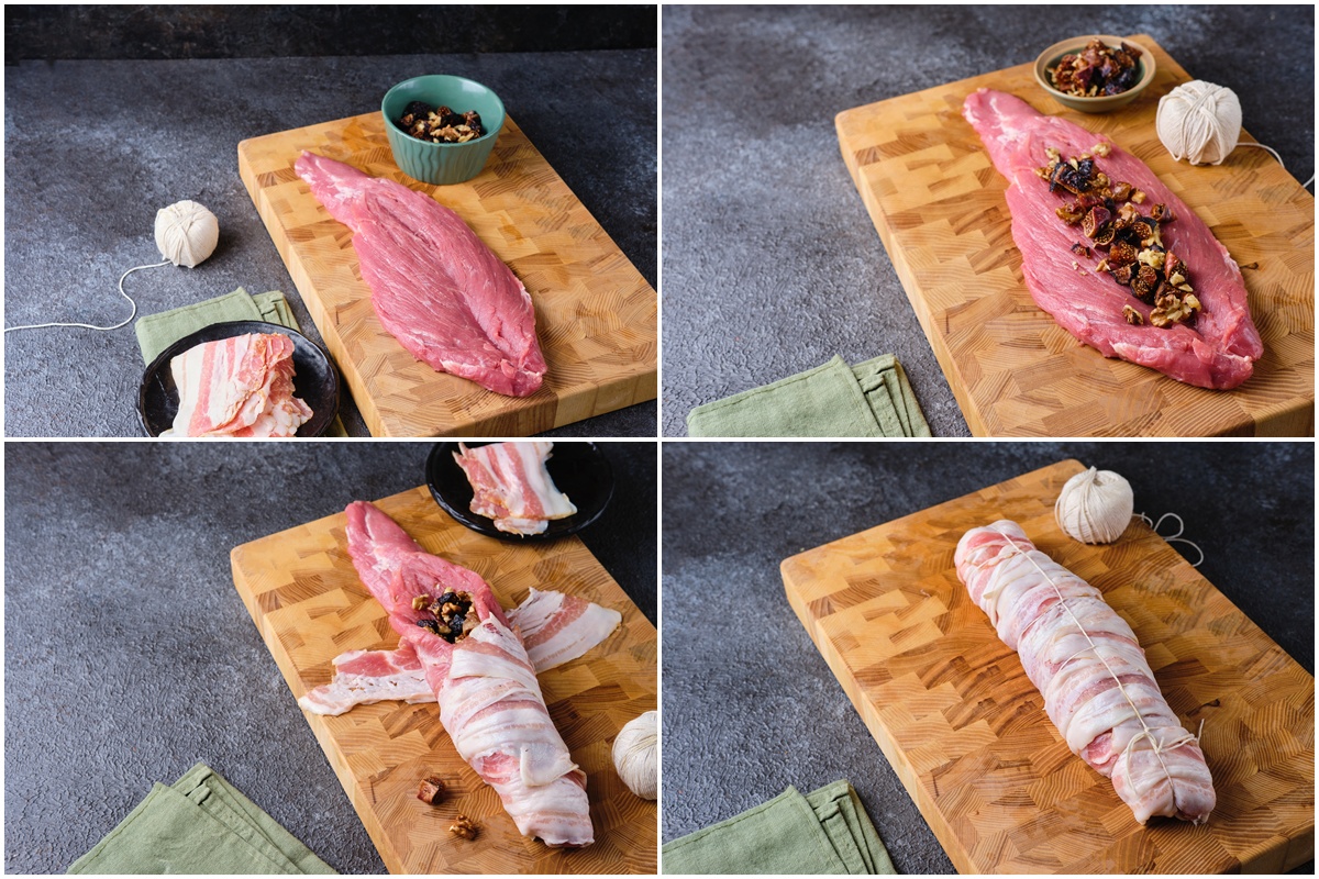 Despre rețeta de ruladă de porc cu smochine și nuci în felii de bacon